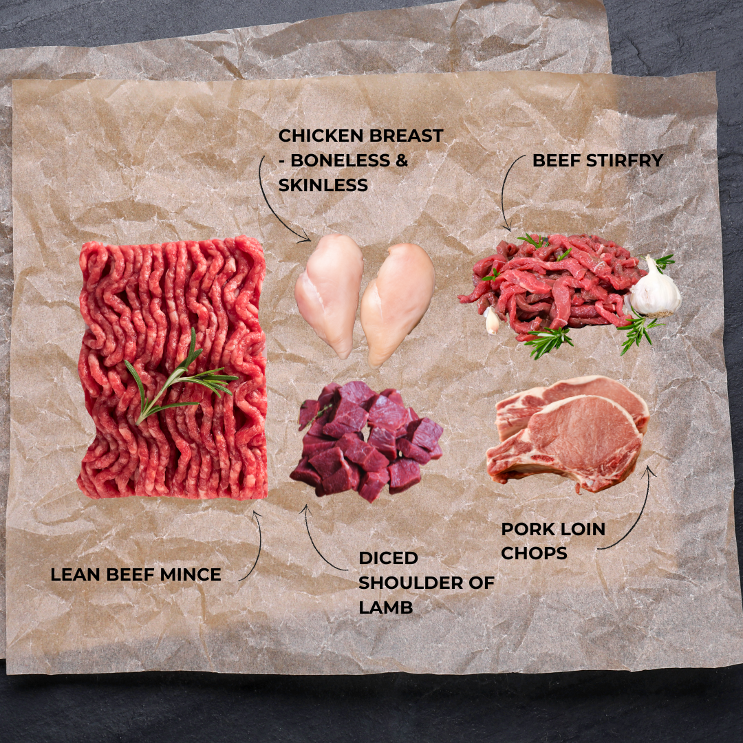 For your weekly meat pack 1, select from either 500g or 1kg servings of: